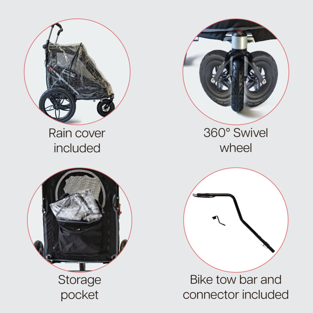 Convenience is what makes our products so special. You can put the clock on it: within 5 minutes your dog stroller is ready to use. If you can’t figure it out, don’t worry, we have made you video manuals.