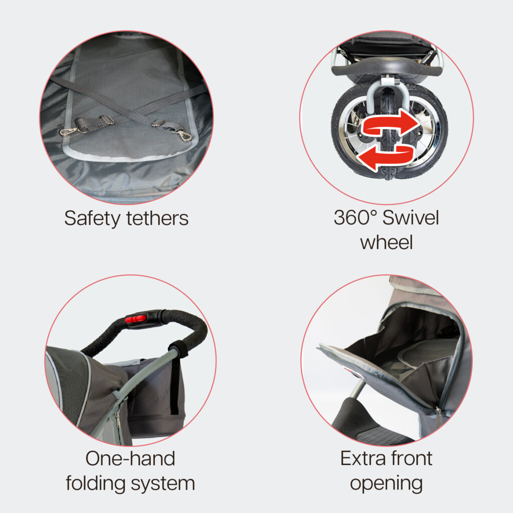 Convenience is what makes our products so special. You can put the clock on it: within 5 minutes your dog stroller is ready to use. If you can’t figure it out, don’t worry, we have made you video manuals.