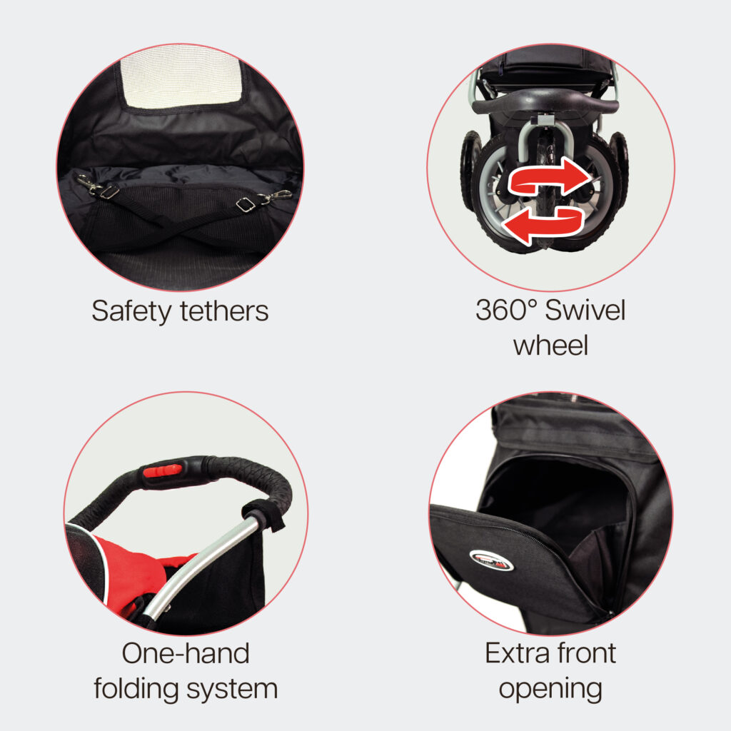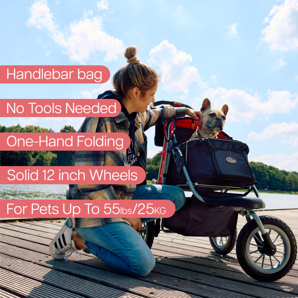 Convenience is what makes our products so special. You can put the clock on it: within 5 minutes your dog stroller is ready to use. If you can’t figure it out, don’t worry, we have made you video manuals.