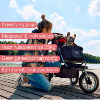 De buggy bevat alle ruimte voor jouw hond, jullie drinken en snacks, de lijn om een stukje te wandelen, een speeltje en eventuele boodschappen.